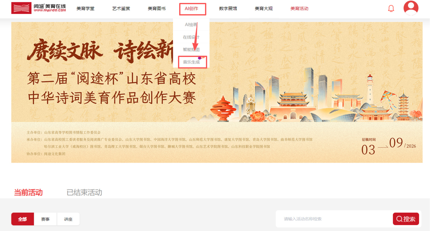 4月23日至5月20日期间,将作品上传至活动官网 https://www.yuetu100.com/2026cclgmy ,上传作品、歌曲简介及『阅途美育在线』音乐生成功能使用感受。